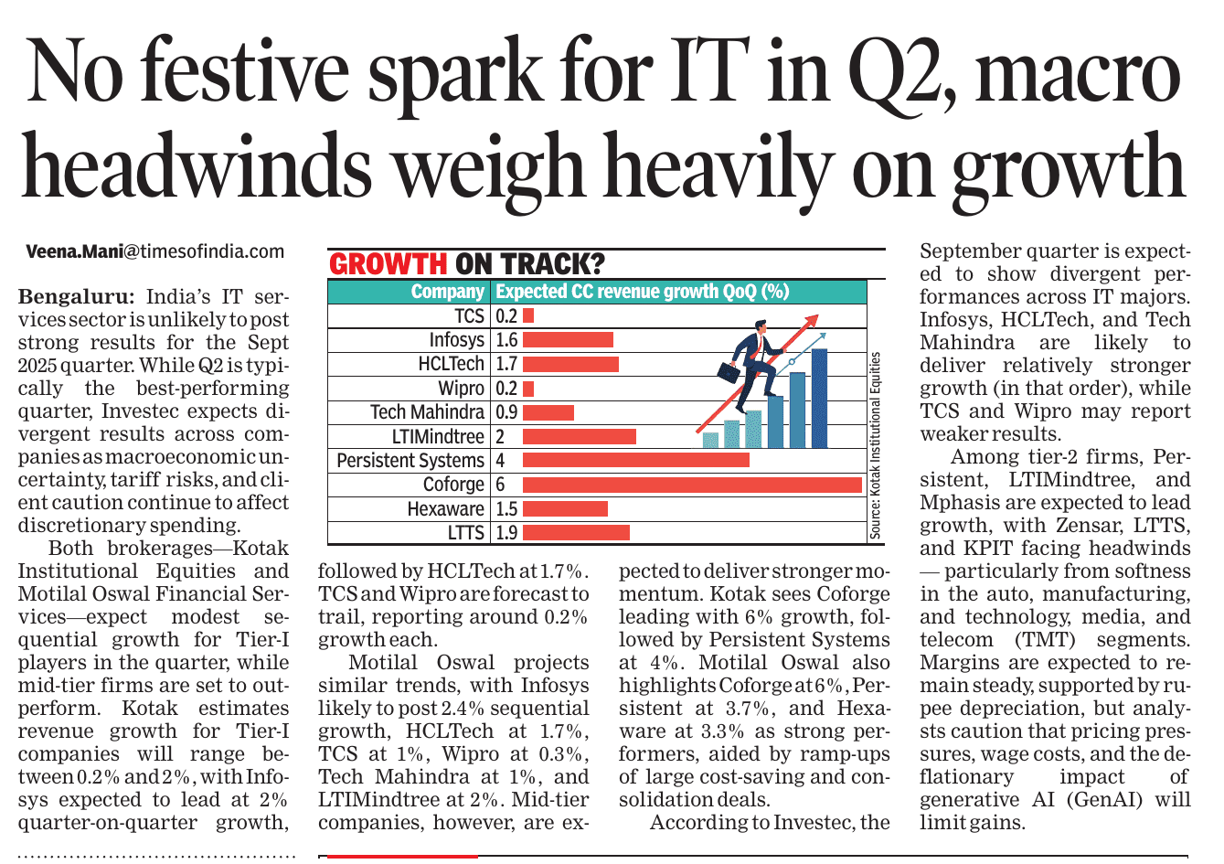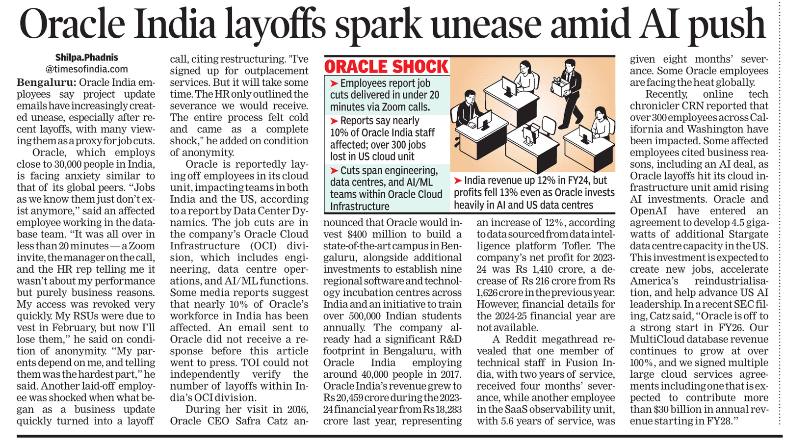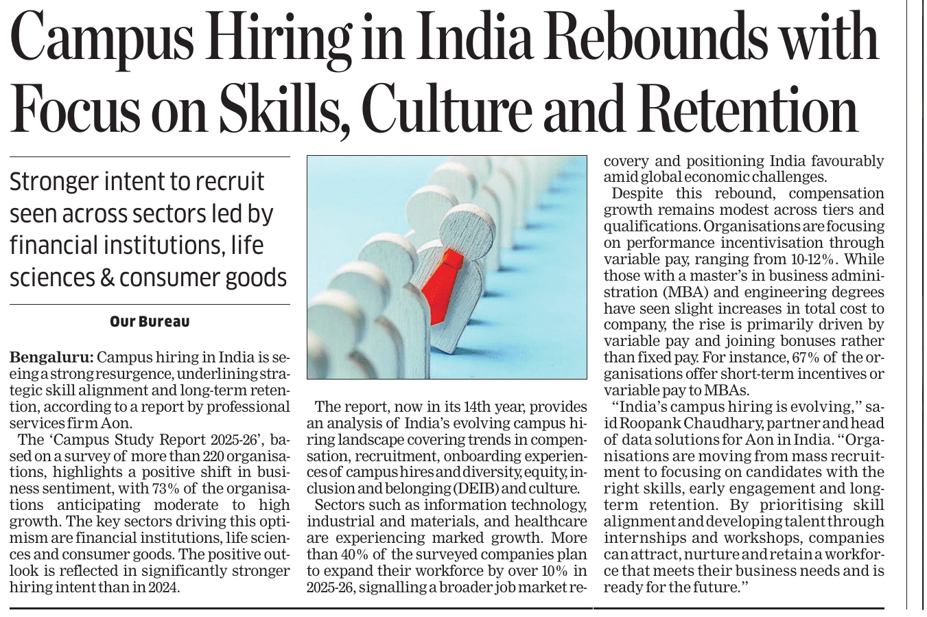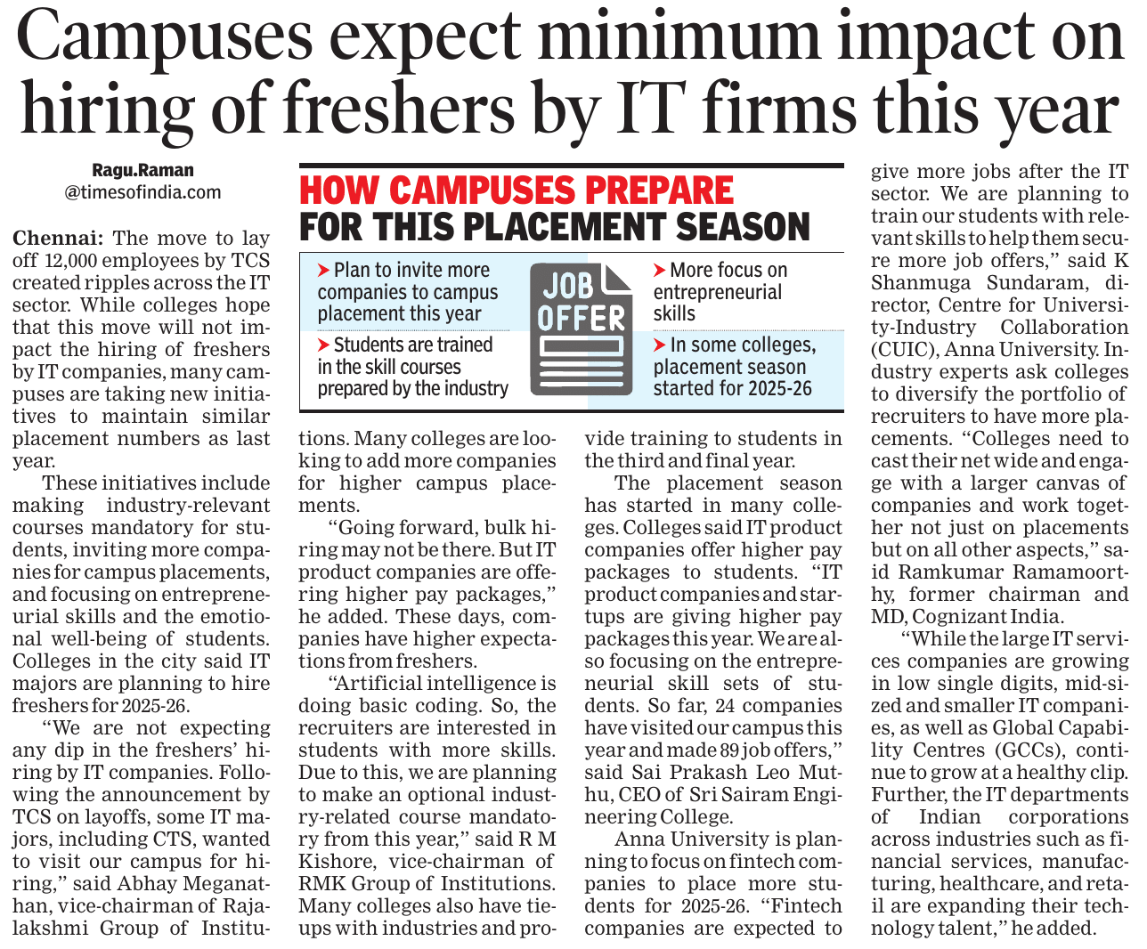 News And Articles Marginal impact Of Visa Hike on IT firms_ Nasscom20250923 Tech, engg roles lead placements_ Report20250917 Campus Hiring in India Rebounds with Focus on Skills, Culture and Retention Oracle India layoffs spark unease amid AI push Legal Battle Looms As Don Drops H-1B omb20250921 No festive spark for IT in Q2, macro headwinds weigh heavily on growth20251006 INNOVATION AS AMMO, GUJ’S DEFENCE STARTUPS AIM BIG H2 IT Hiring may Remain Cautious with 3-5_ Growth IT Scrambles for Benchmarks as Clients Eye Outcome-based Deals Cost to Company Too High for Sponsoring (Most) Staff Uncertainty Hits IT, Hiring Demand Falls 10_ in August ‘Q4_ Weak foreign funding lowers hiring sentiment’ Campuses expect minimum impact on hiring of freshers by IT firms this year AI may boost global trade by nearly 40_ in 15 yrs_ Report20251019 ‘All over in 20 mins’_ Oracle’s pink slips shock employees20250909 Tier II, III Cities Outshine Metros with 21 _ Hiring Surge in Sept McD’s to invest $100m in Hyd in next 2 years Clients Tighten Purse Strings Leadership Isn’t A Solo Act20250916